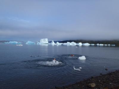 Så er den første langtur på Grønland slut. Alt gik godt, og det har været en helt særlig oplevelse for os alle, der var med. Mens vi går i gang med at sortere i billederne, får I lige denne sommerhilsen fra en morgendukkert ved Narsaq. Hans S.